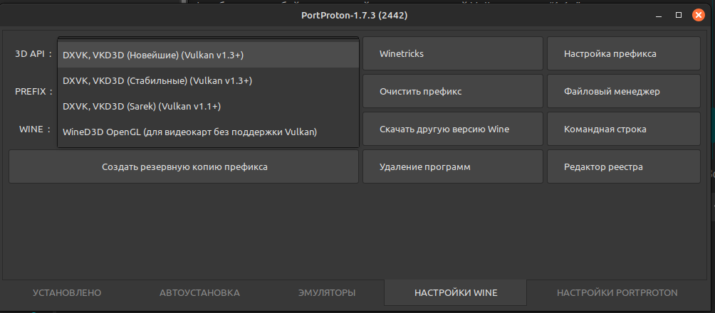 Перестали отображаться 3D API 1.2 и 1.3, только 1.1 Sarek. При этом видеокарта поддерживает Vulkan 1.3(до этого обновления все было нормально, как минимум), а в самих настройках портпротона такие API есть.