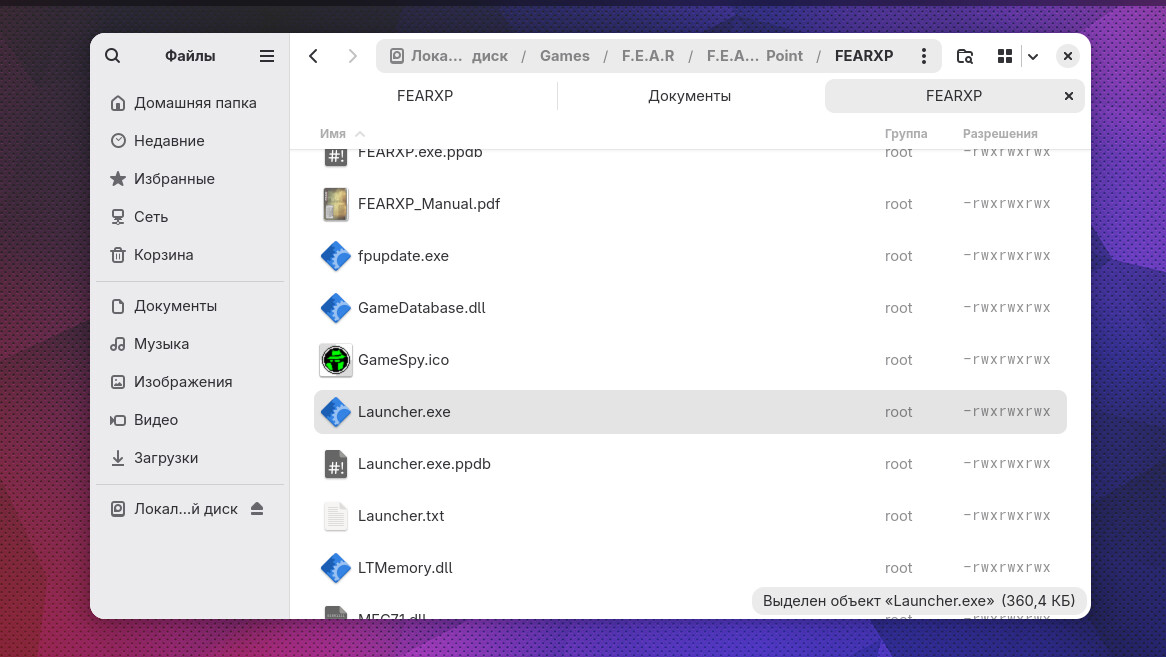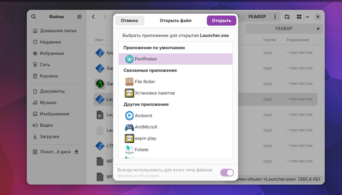 Запустите F.E.A.R. - Extraction Point через лаунчер. Для этого с помощью PortProton откройте файл