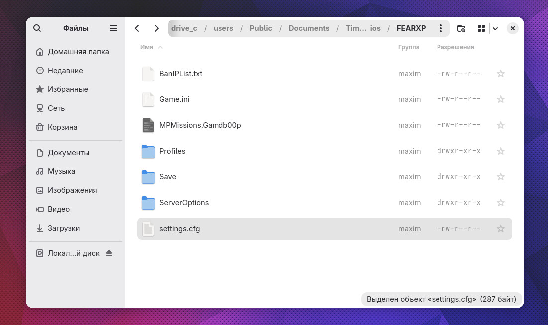 1. Откройте папку с префиксом игры. Перейдите в папку в которой находится файл с настройками игры. В моём случае путь до файла с настройками игры выглядит так: