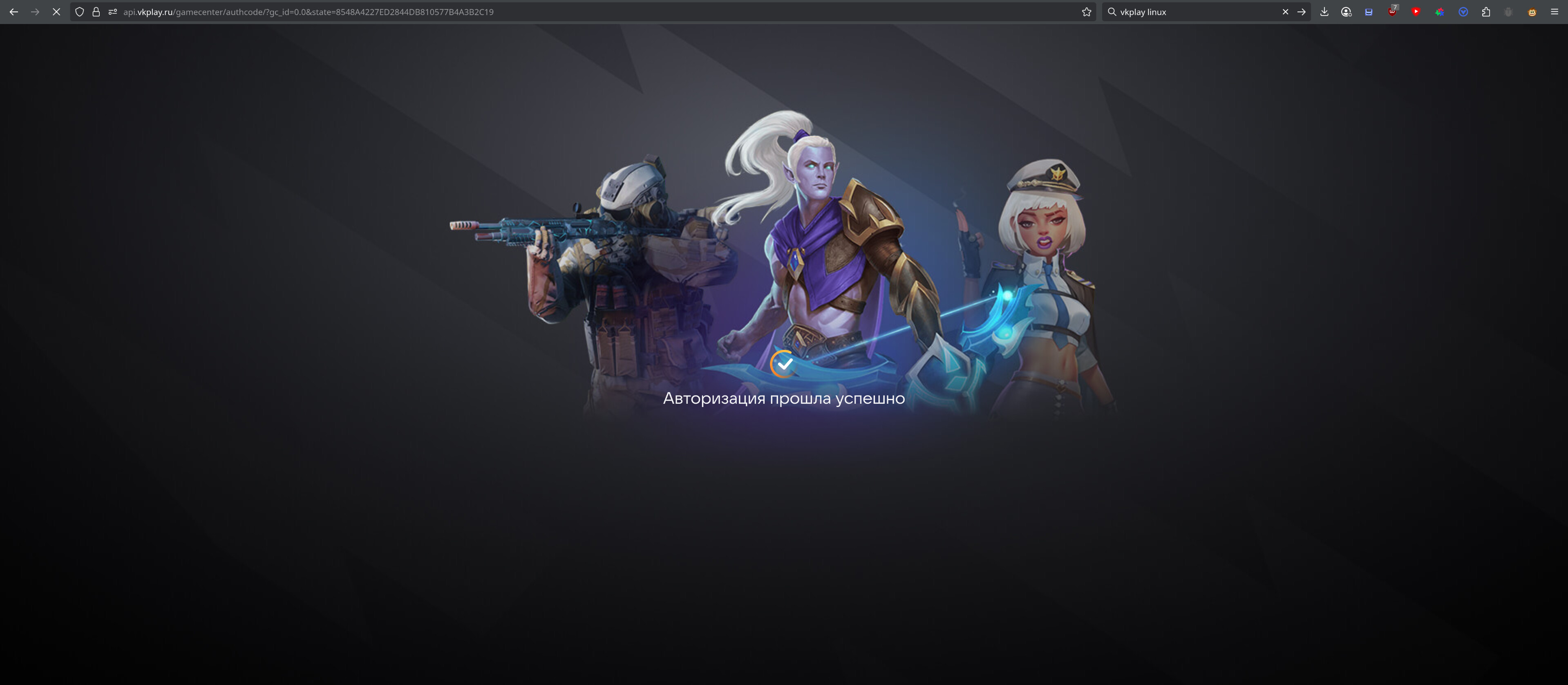 Успешная авторизация в клиентте